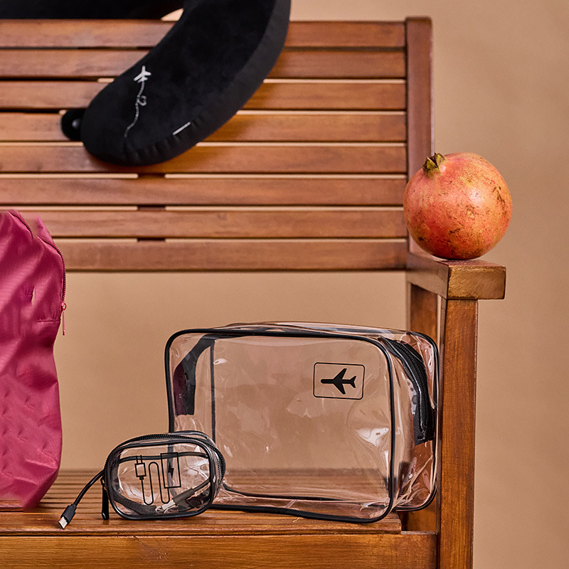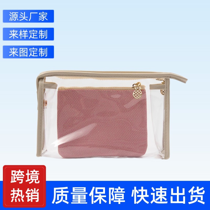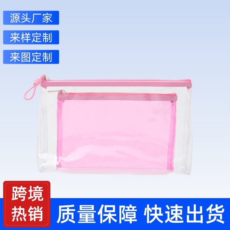简约两件套pvc防水化妆包 透明便携洗漱袋旅行组合收纳包工厂定制