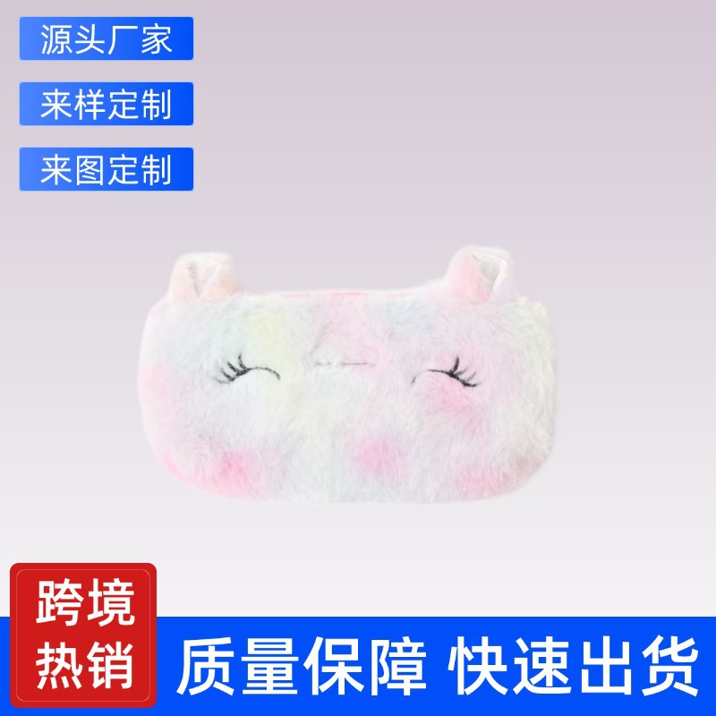 彩虹渐变可爱猫咪毛绒笔袋化妆包 可收纳文具美妆 多用便携收纳包
