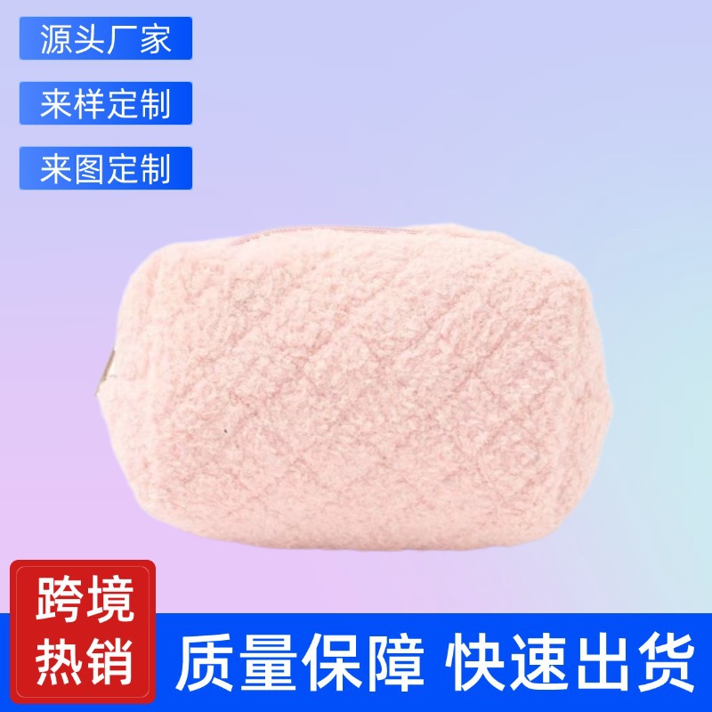新款粉色毛绒八角化妆包 绗缝菱格洗漱包 日常通勤旅游便携收纳包