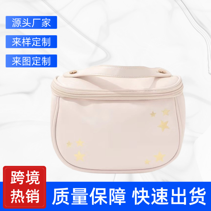 新款PU立体大容量化妆包 烫金星星便携洗漱包 旅游出行分区收纳包