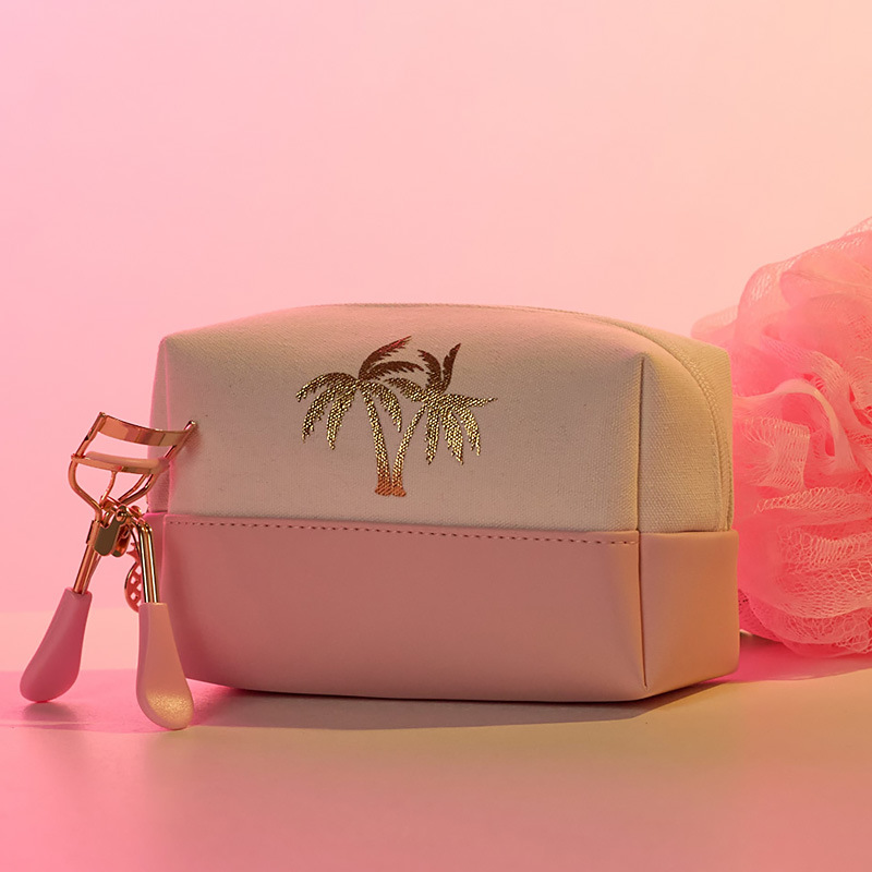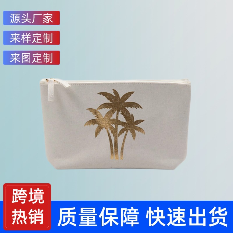 定制跨境新款ins风金色椰树化妆包 出行美妆收纳包旅行便携整理包