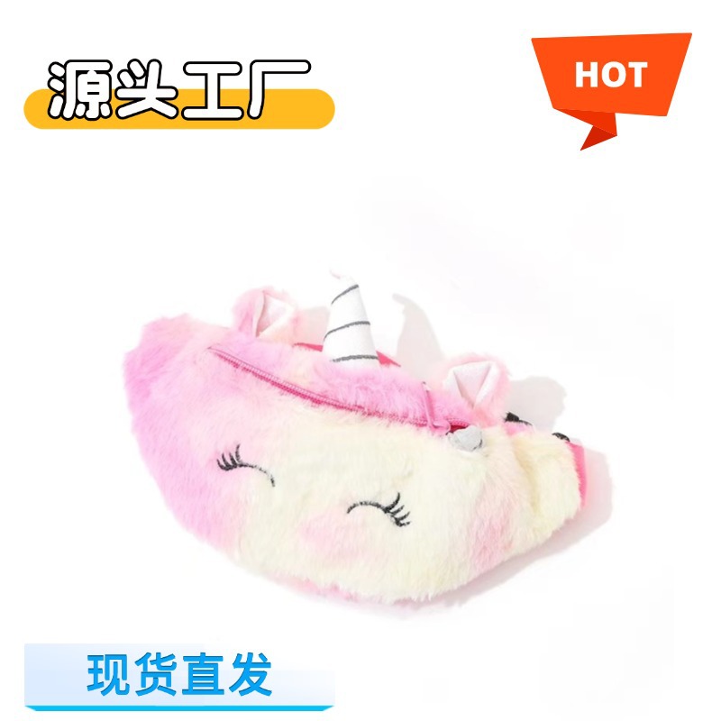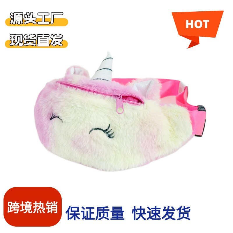 跨境热卖毛绒独角兽斜挎腰包 梦幻渐变卡通造型 儿童出行单肩小包