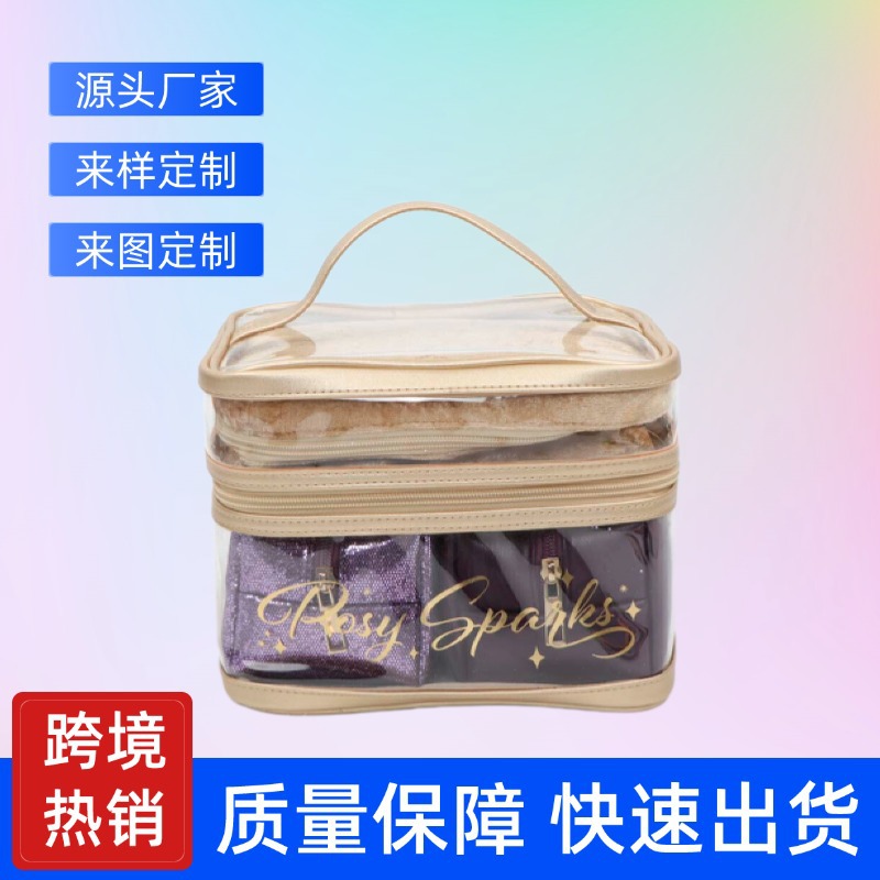 定制跨境新款化妆包 分区可视收纳包 日常补妆旅游出行便携洗漱包