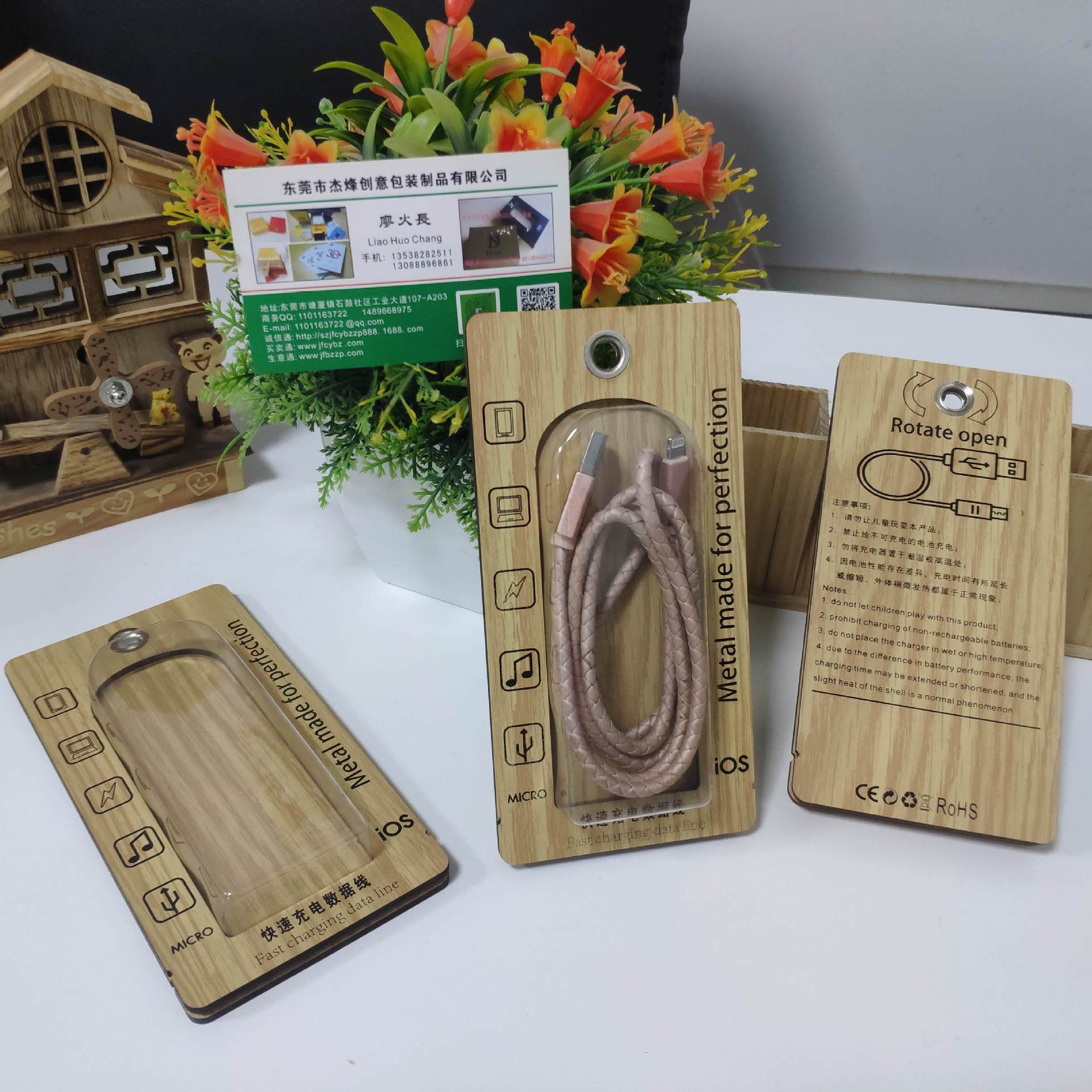 高档闪充数据线包装木盒 木质苹果华为数据线包装盒USB数据线包装