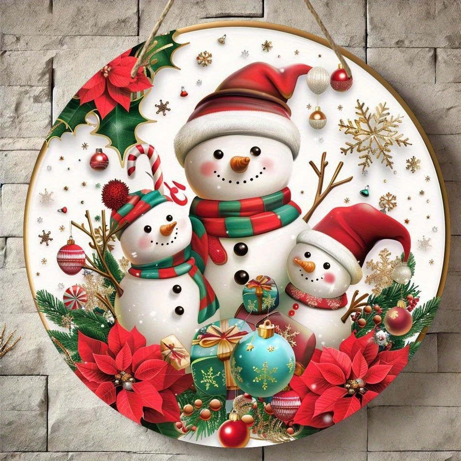 跨境圣诞节雪人创意挂饰木质工艺品圆形门牌标志木制节日装饰挂牌