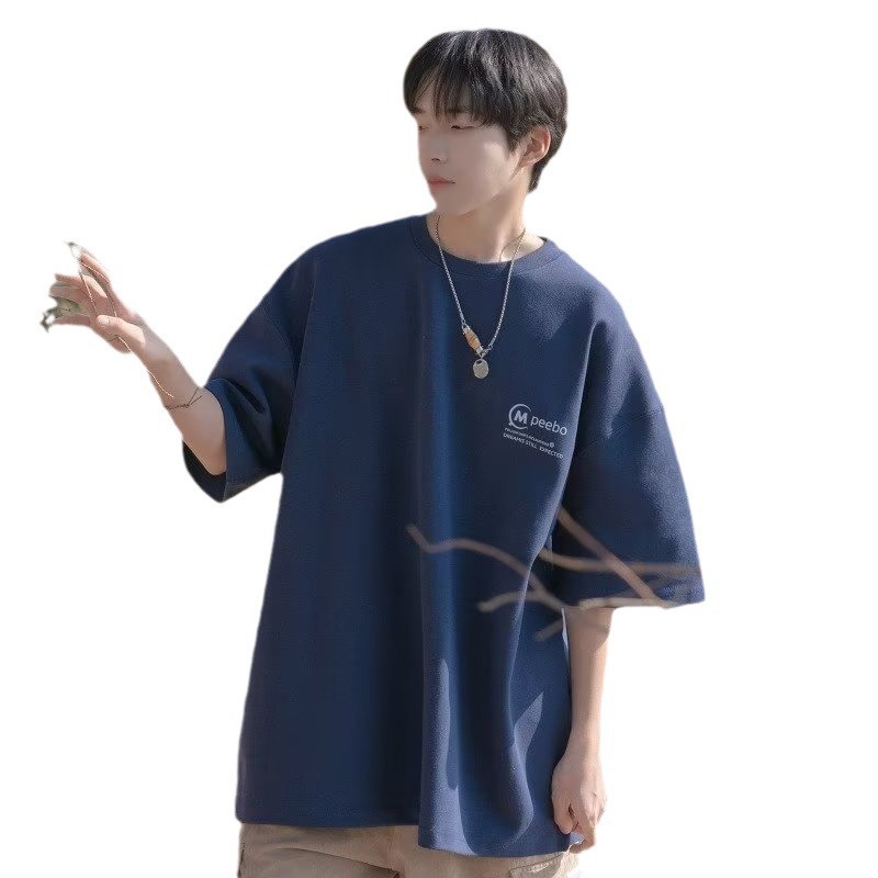 高中生短袖t恤男款2023新款男士宽松潮流青少年潮牌初中生五分袖