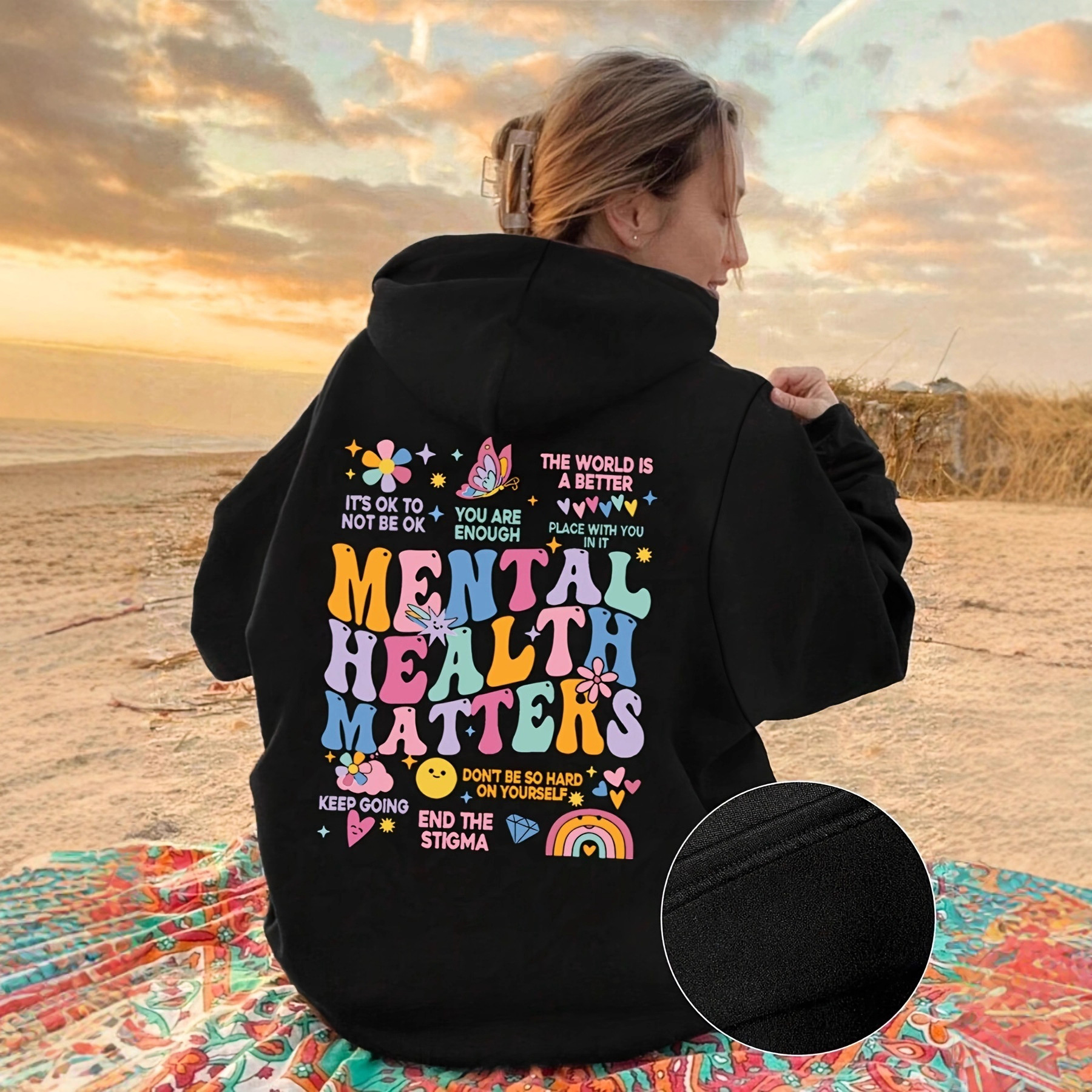 跨境独立站女士落肩袖套头衫大码字母图案印花螺纹袖口连帽卫衣