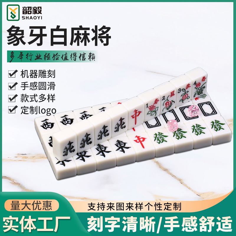 麻将厂家供应象牙白手搓麻将 小号中号大号白玉石家用麻将牌