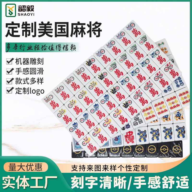 美国麻将定 制美式麻雀牌自定义LOGO密胺卡通麻将便携礼品麻将