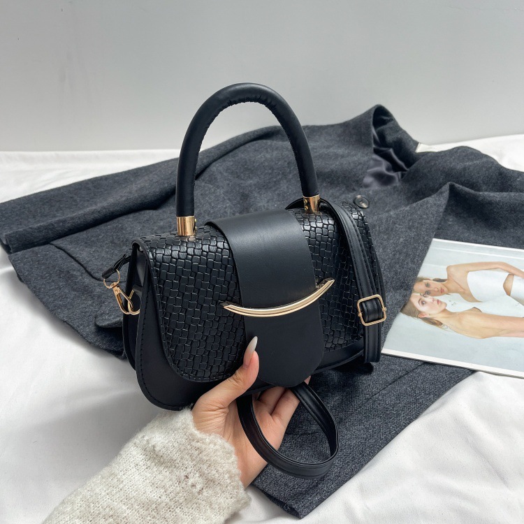 新款单肩包小众百搭斜挎包包女韩版时尚款式编织图案肩带可调节