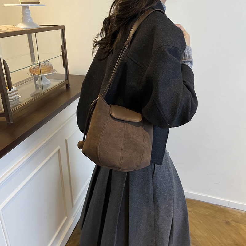 复古包时尚单肩包休闲2025简约新款感通勤斜挎水桶包女斜挎包轻便