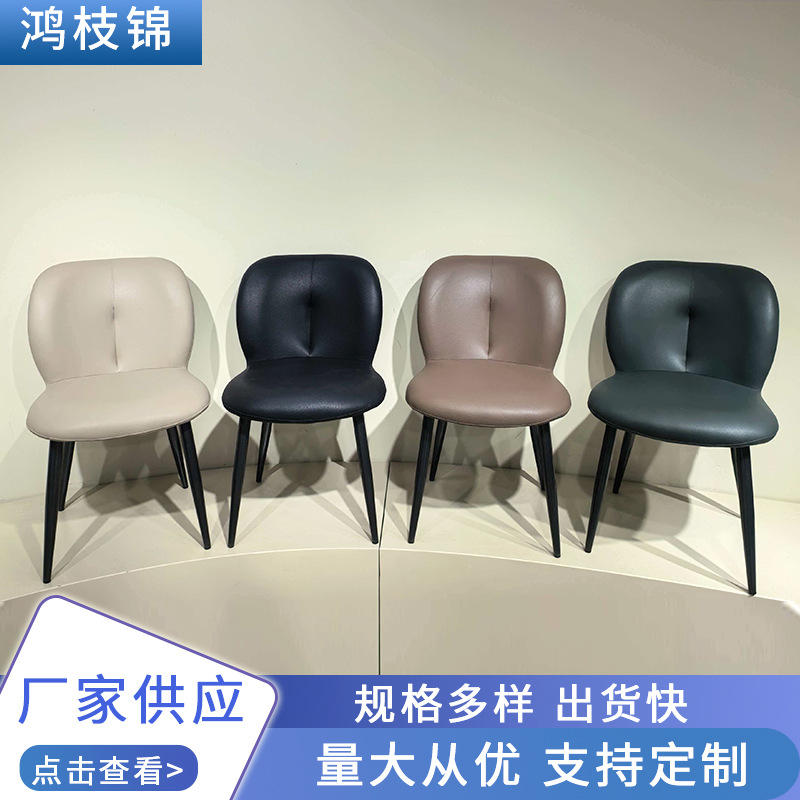 家用餐椅荔枝纹猫抓皮现代简约轻奢餐椅客厅靠背椅皮革金属餐厅椅