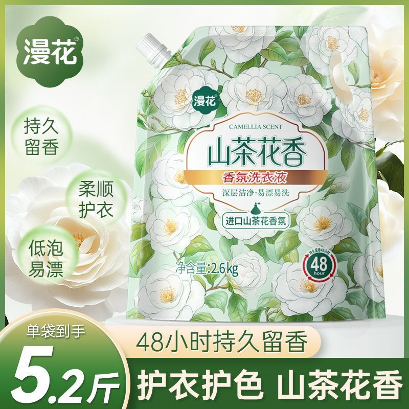 漫花山茶花香洗衣液2.6kg大袋装持久留香去污家庭学生宿舍实惠装