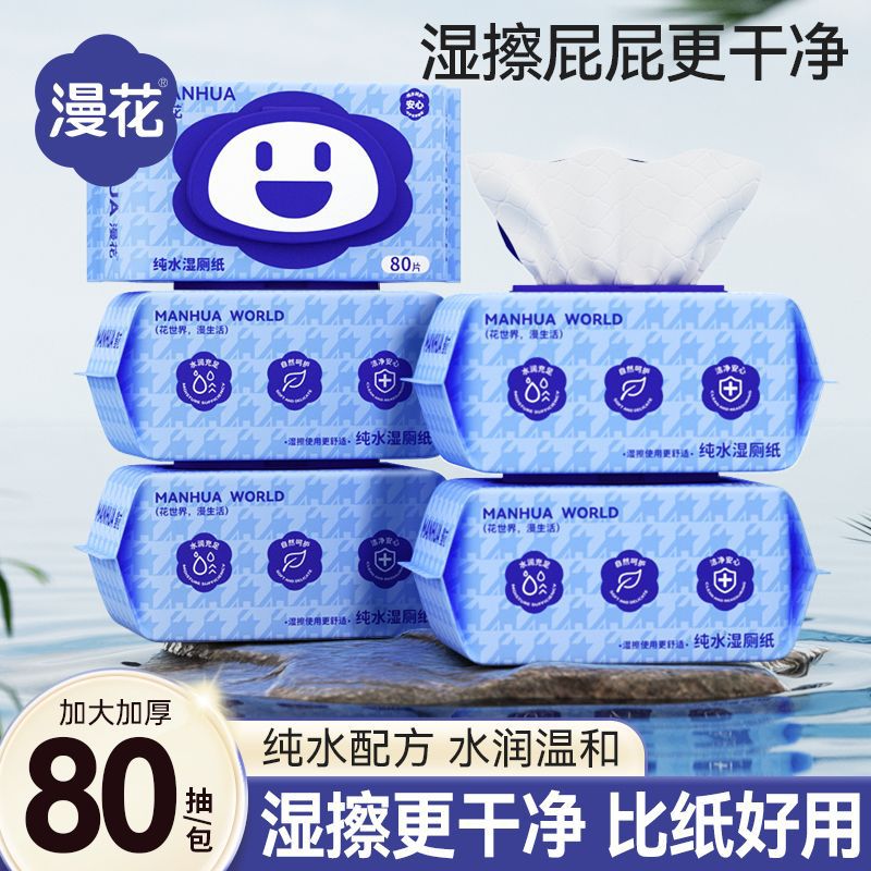 漫花纯水湿厕纸家用大包经期清洁宿舍家庭装整箱加厚可冲散厕纸巾