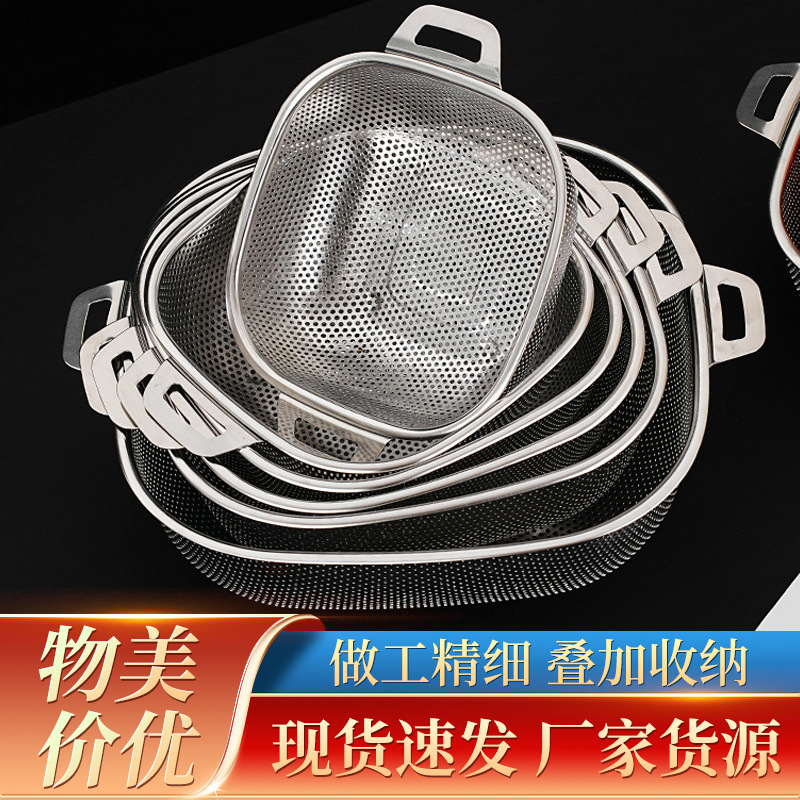 沥水盆洗菜盆滤水篮不锈钢洗米篮方型淘米盆厨房多功能密孔篮米筛