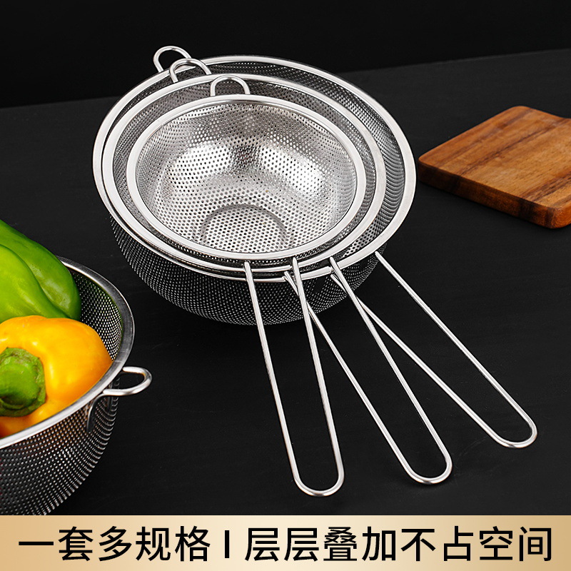 加厚不锈钢单柄密孔多用盆洗水果篮洗菜盆沥水沥油盆多功能淘米器