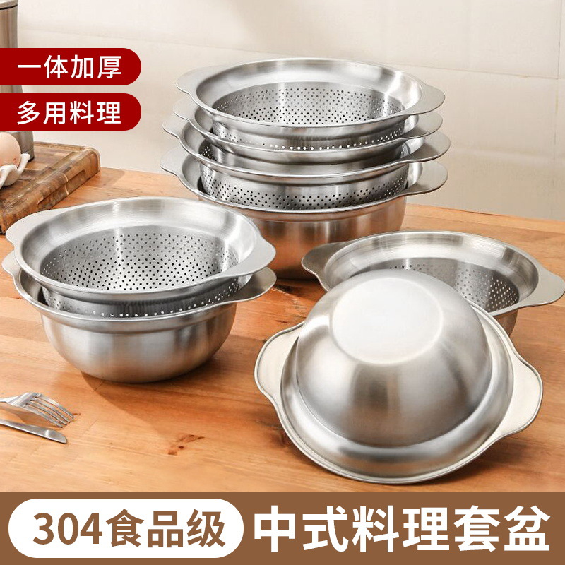 德国304不锈钢漏盆洗菜盆家用淘米筛菜盆厨房菜盆滤水沥水篮盆子