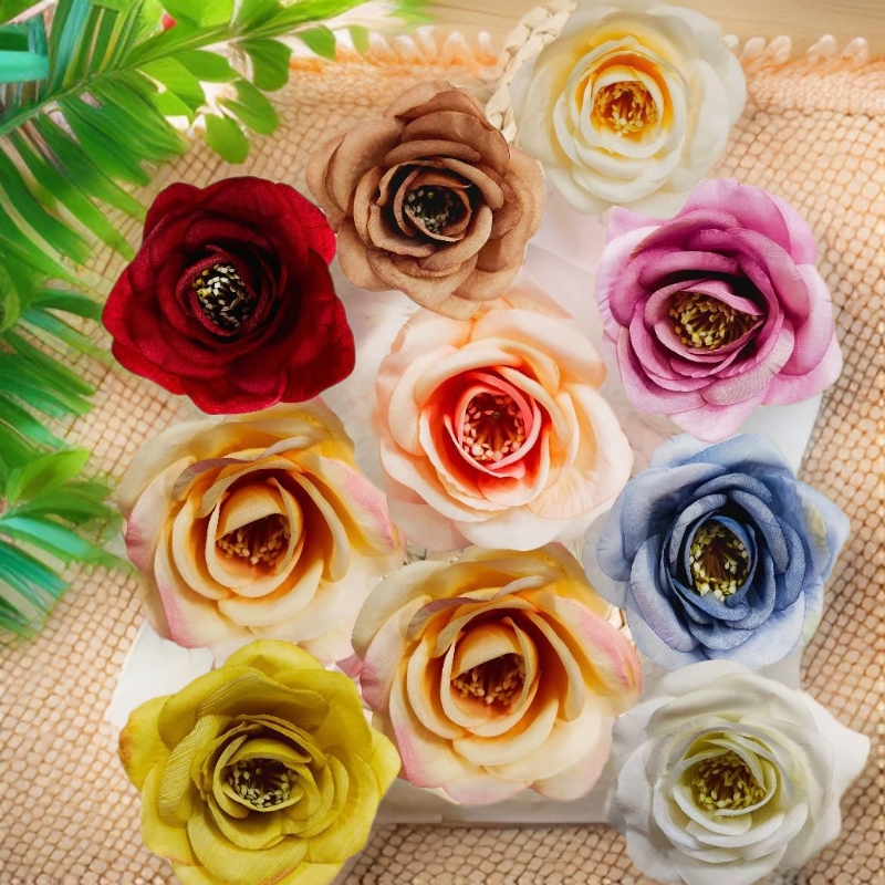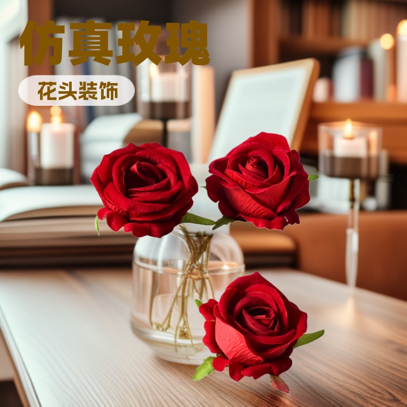 绒布玫瑰花7cm花头仿真花婚礼场景布置头饰diy工艺品角玫假花花束