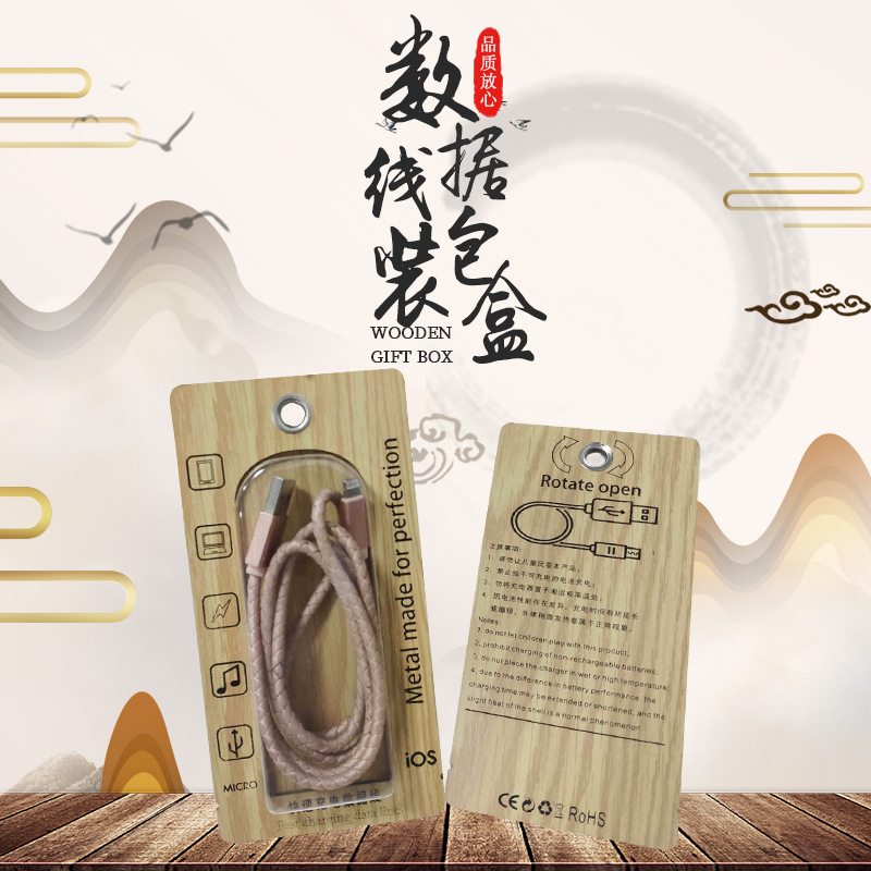 新款数据线包装盒现货通用苹果安卓数据线包装木盒木质数据线礼盒