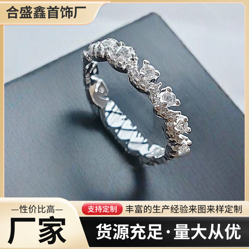 白色满钻开口女戒时尚轻奢不掉色戒指聚会旅游女士尾戒指环饰品