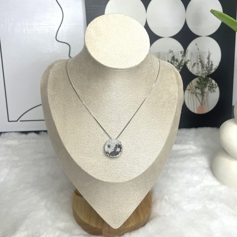 太极八卦笑脸项链招财转运锆石黑白满钻吊坠锁骨链源头厂家直销