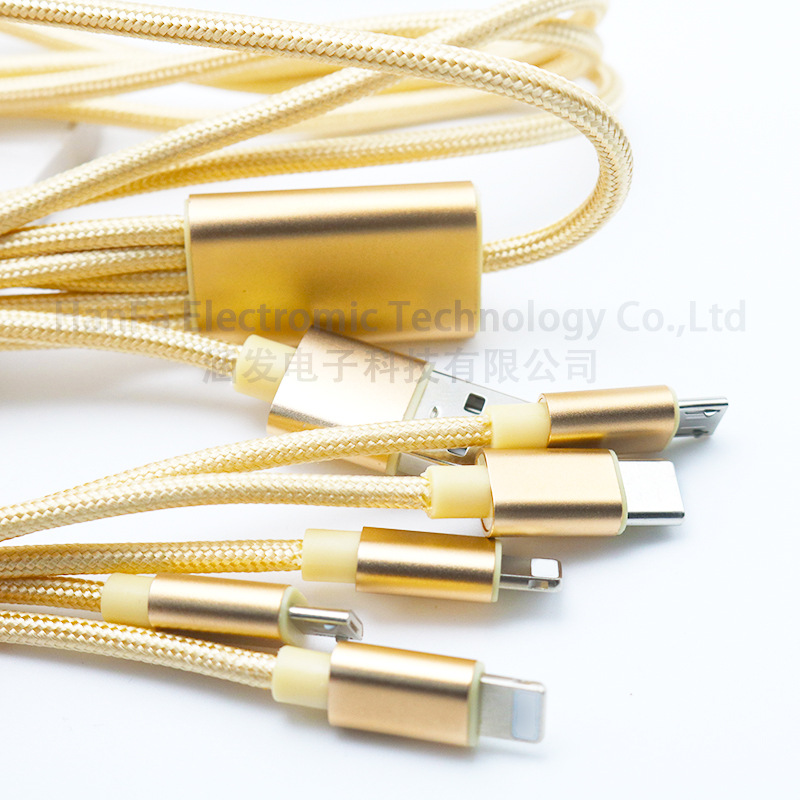 厂家直销外贸产品重金属一拖五铝合金编织手机充电线数据线