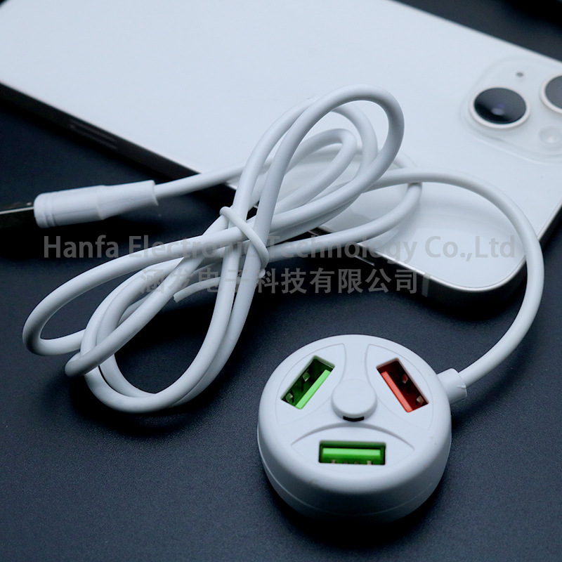 厂家直销外贸弹簧一拖三充电线数据线多功能收纳快充三合一