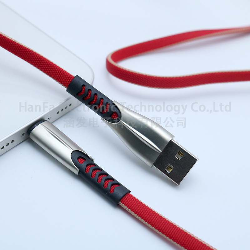 厂家直销外贸数据线毛毛虫编织扁线防断铝壳平板通用充电线数据线