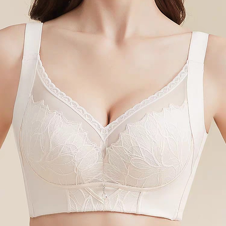 调整型内衣女胸罩刺绣花面加高侧比收副乳防下垂聚拢中厚杯文胸