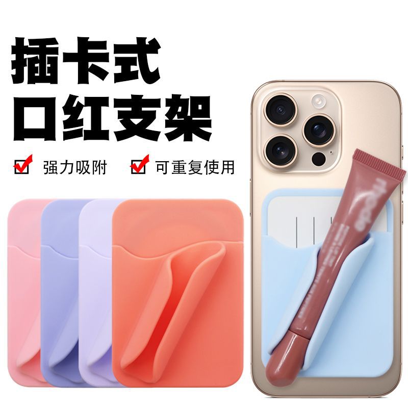 跨境新品手机支架磁吸插卡手机口红支架多功能便携硅胶卡包支架