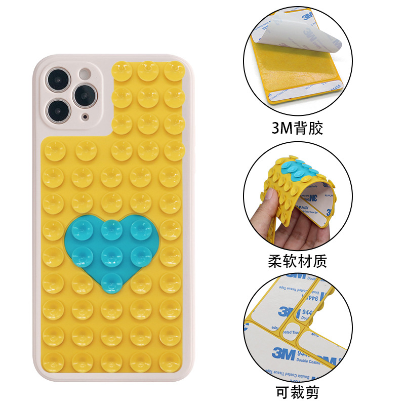 适用于手机支架单面硅胶吸盘手机支架多功能双色爱心贴胶吸盘支架