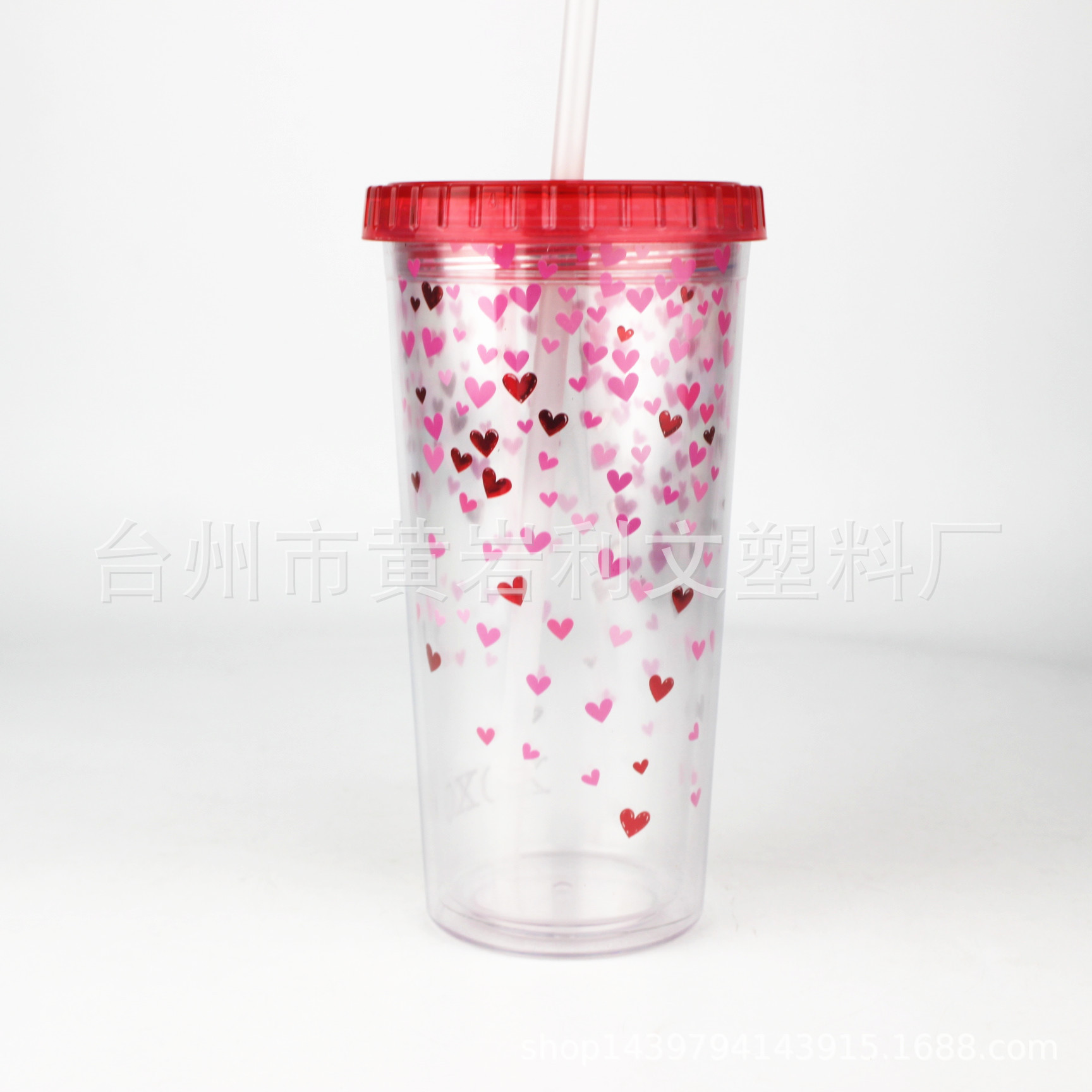 爆款PVC双层吸管杯 450ML直筒吸管杯 塑料果汁杯 PS冰饮杯