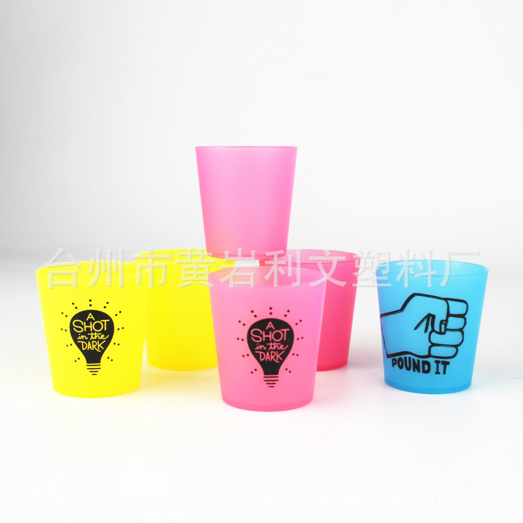 爆款LOGO制50ML塑料磨砂酒杯 pp试饮杯 荧光试饮果汁杯