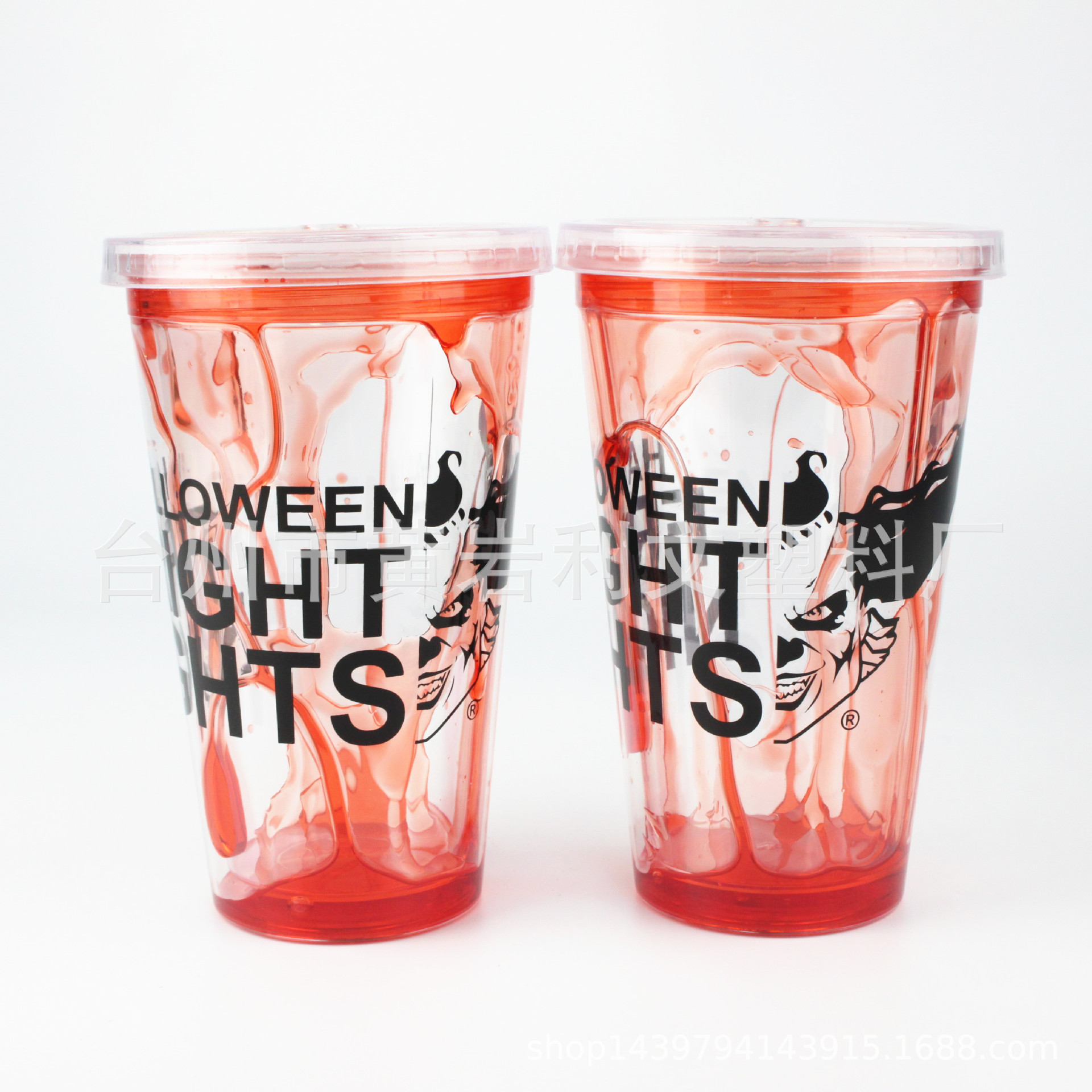 爆款鬼节礼品杯 塑料节日杯 搞怪派对血液16OZ双层吸管杯