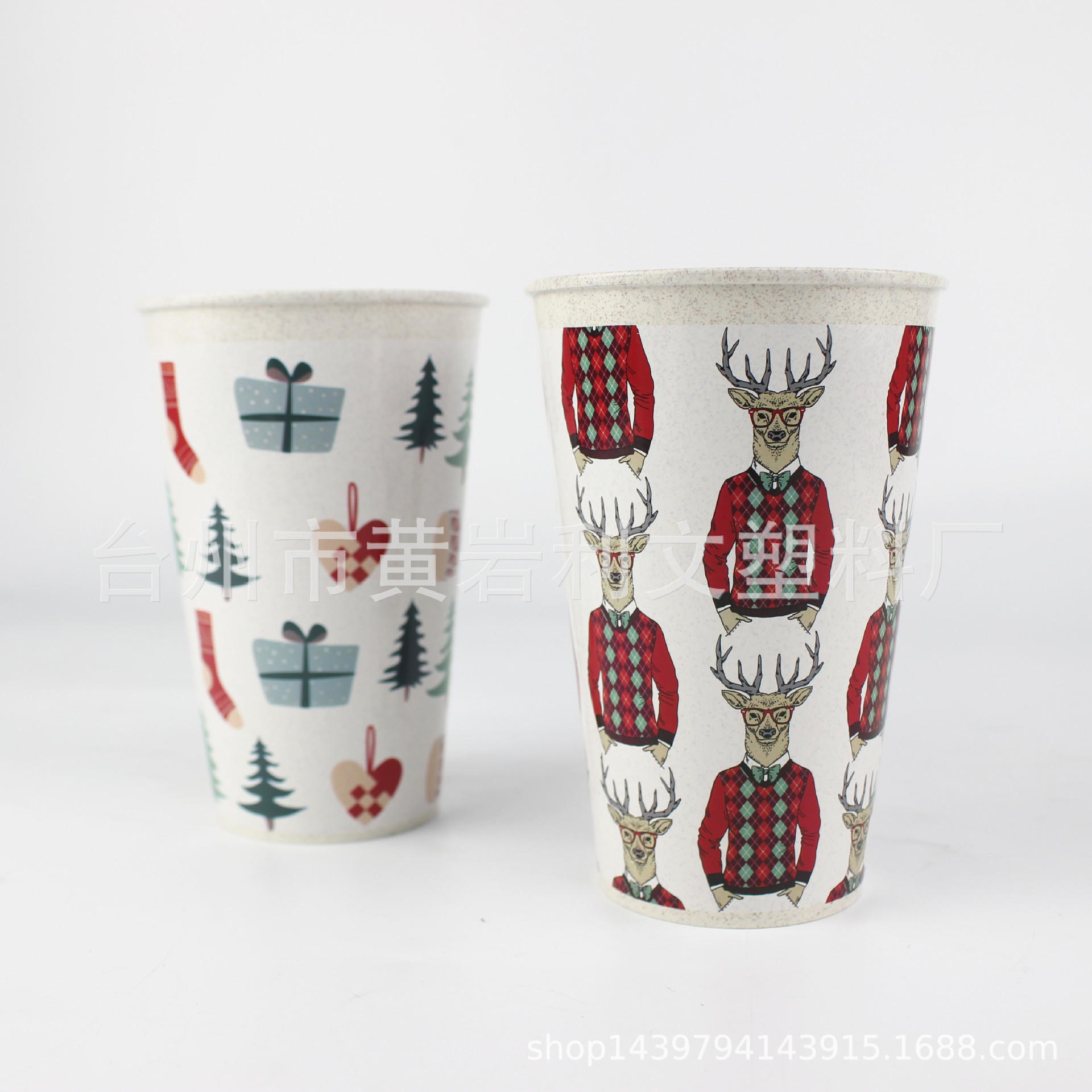 爆款2021定果汁杯 满版圣诞竹纤维果汁杯 可降解塑料杯 节日