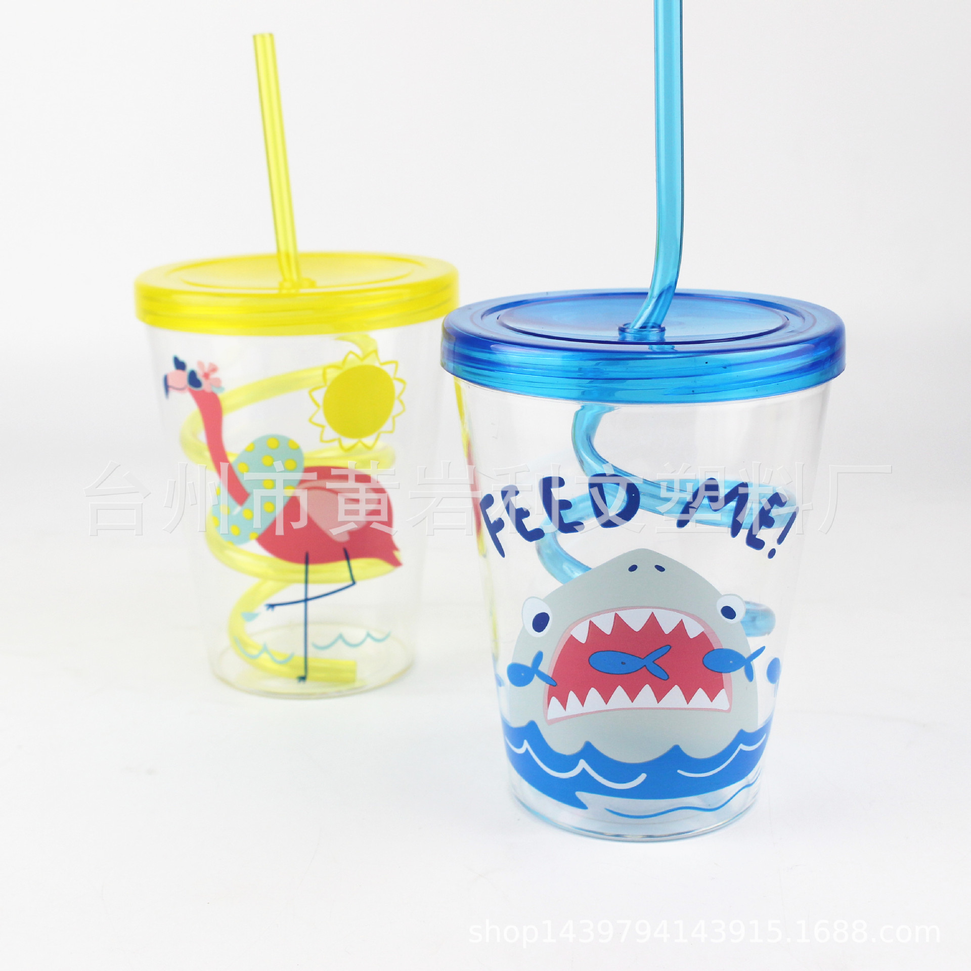 2021矮胖吸管杯 单层螺旋吸管塑料杯 PS儿童冷饮杯 可卡通