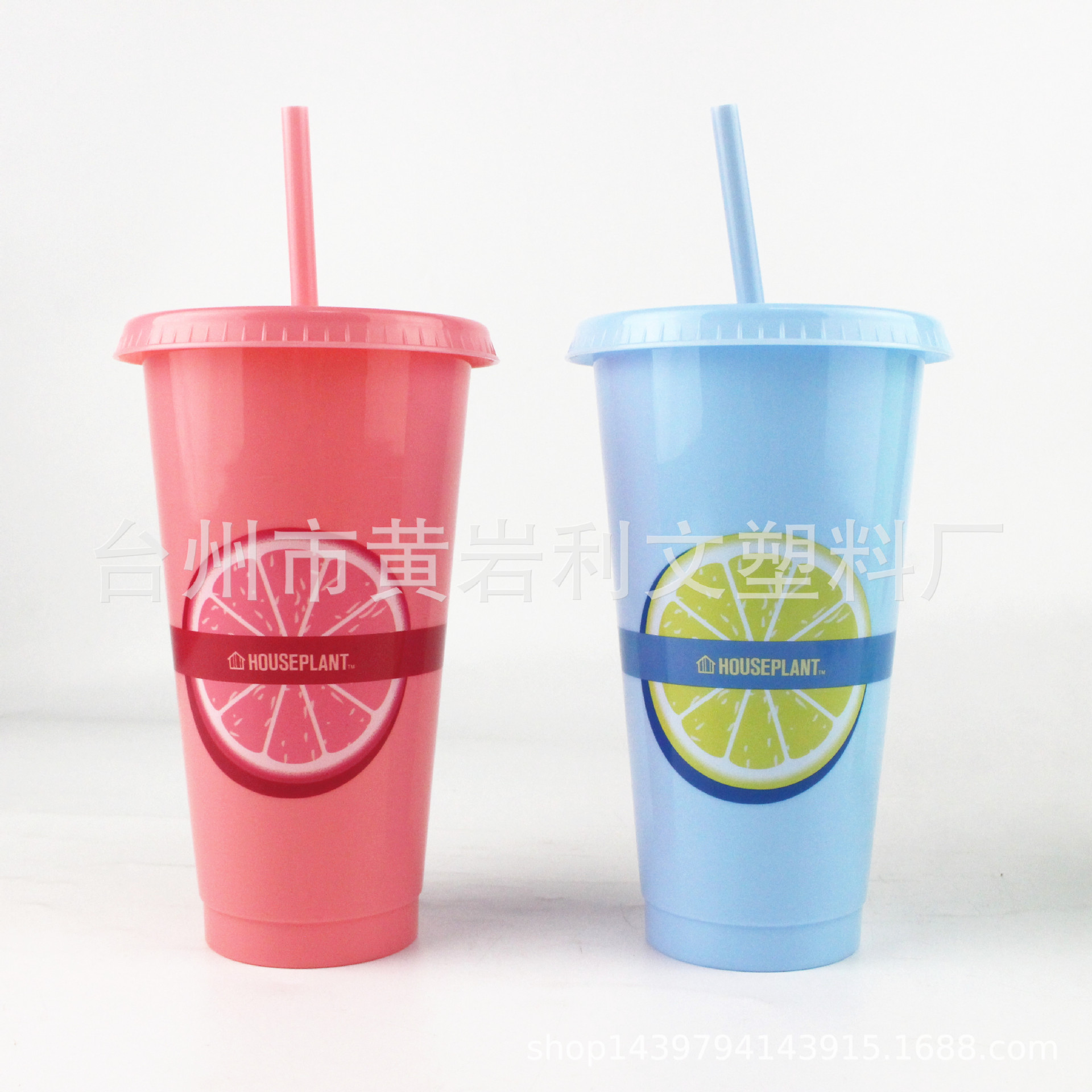 pp塑料吸管杯 一次性吸管杯 700ML大容量果汁杯 可满版印刷