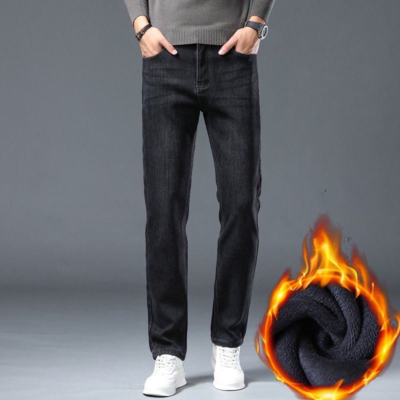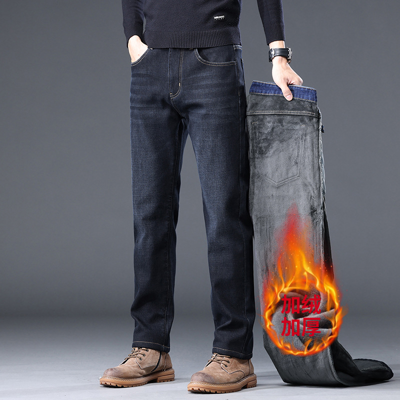 高端加绒加厚男士牛仔裤秋冬直筒宽松商务休闲百搭弹力保暖裤子男