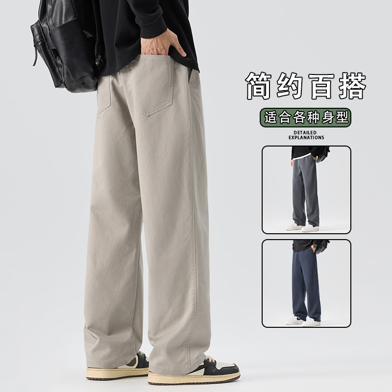 高端纯棉卡其色休闲裤男士秋冬商务直筒裤2025新款潮流百搭裤子男