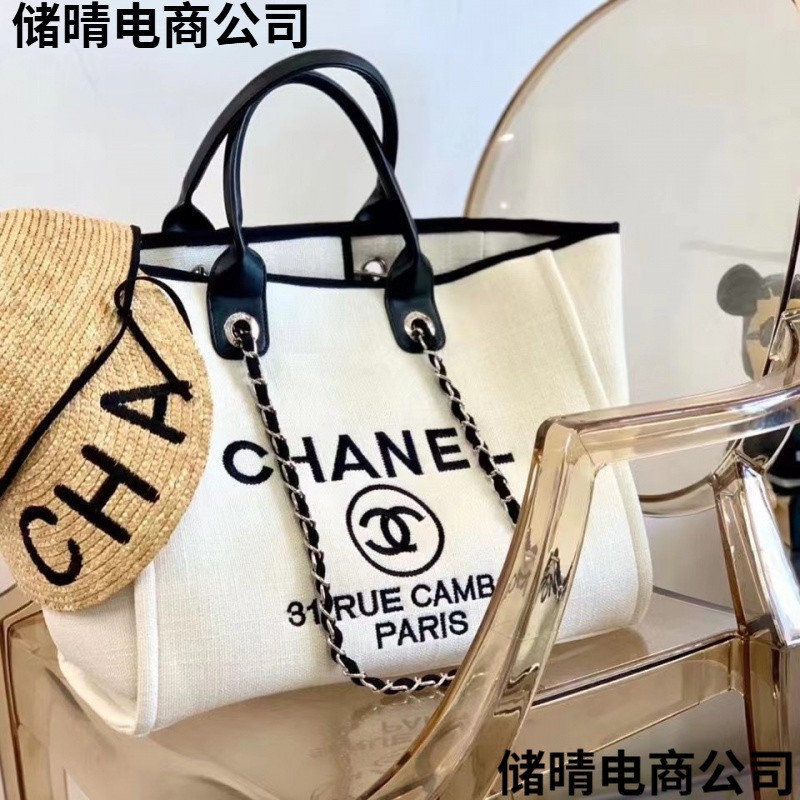 2025经典风沙滩包刺绣亚麻帆布妈咪包购物袋大容量洋气糖果色米色