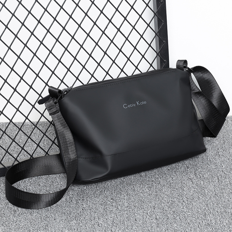 皮膜布男士斜挎包2025新款商务通勤单肩包防水背包横款休闲男包