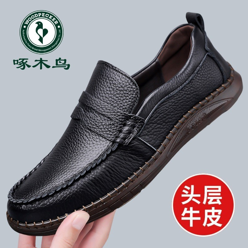 啄木鸟男鞋真皮商务休闲皮鞋男士头层牛皮一脚蹬软底驾车鞋爸爸鞋