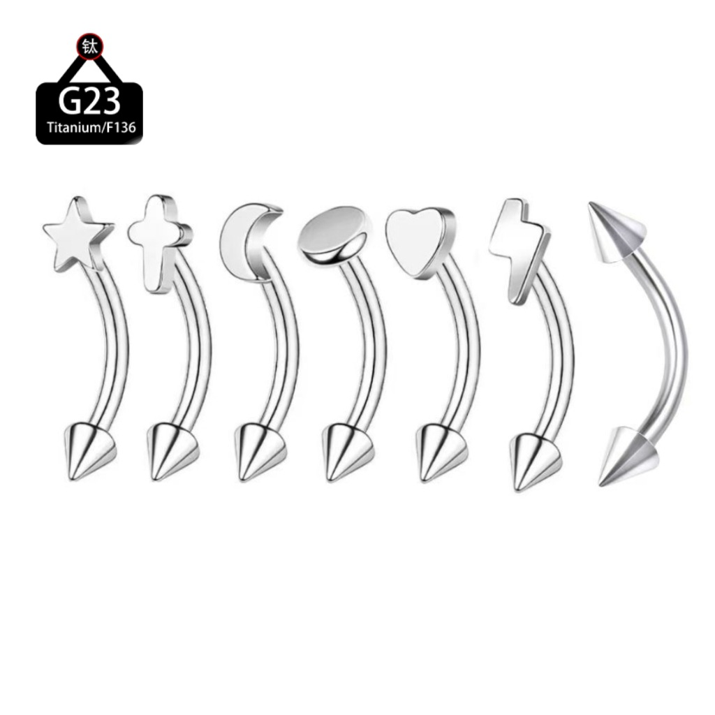 F136钛合金内螺纹弯杆眉钉 G23五角星几何尖锥唇钉耳骨钉穿刺饰品