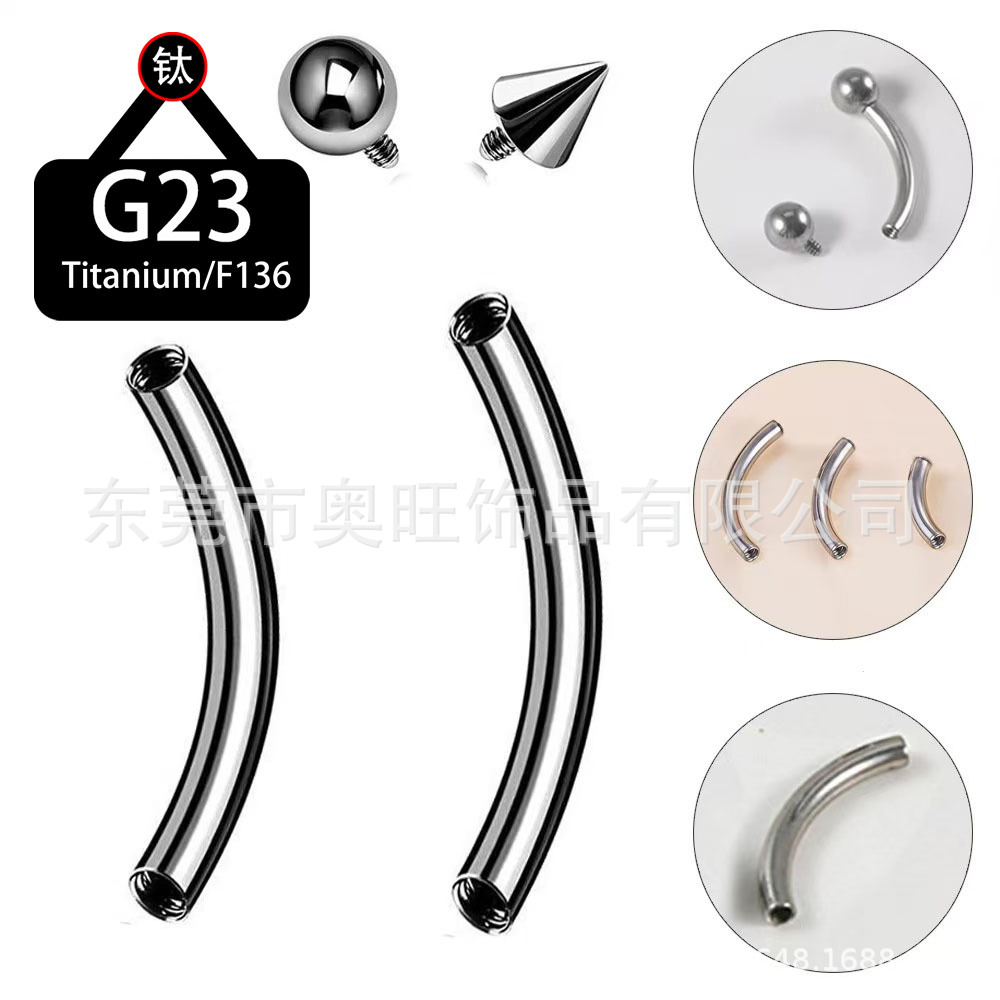 G23钛内螺纹弯杆F136眉钉唇钉舌钉替换配件DIY穿刺饰品内牙杆批发