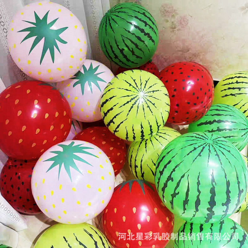 亚马逊批发草莓印花气球12寸网红西瓜籽乳胶气球儿童节节庆装饰品