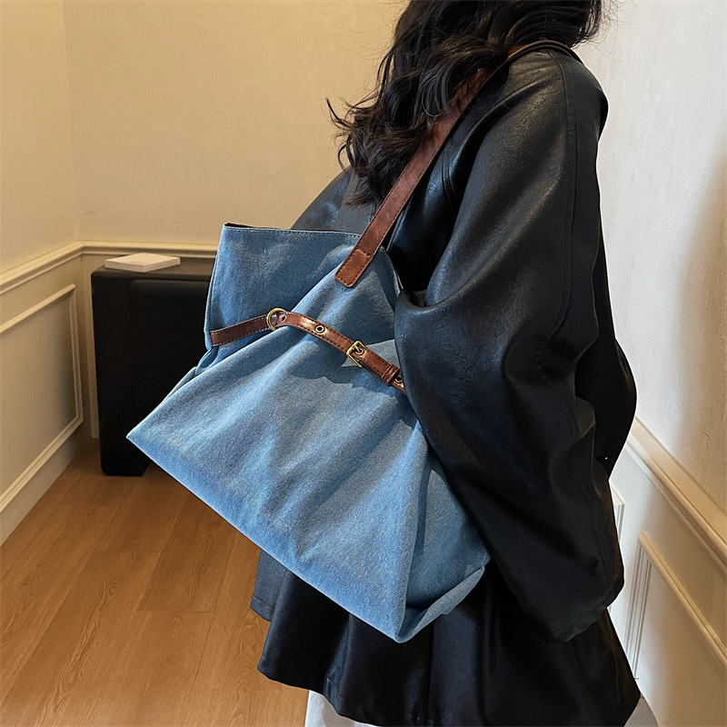 松弛感大容量牛仔布包包女2025新款通勤单肩包大学生上课包托特包