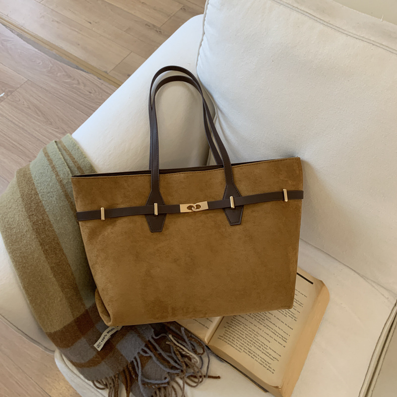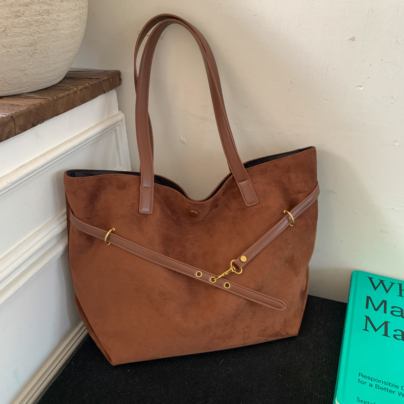 跨境欧美简约大容量麂皮绒托特包2025女式时尚潮通勤高级感单肩包