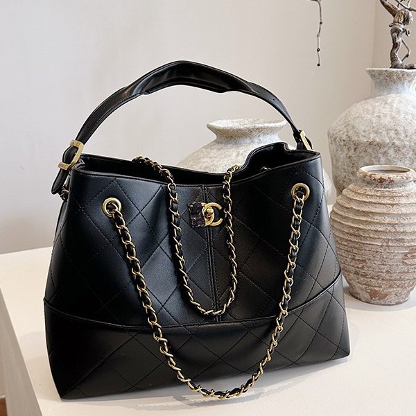 2025新款小香风菱格复古麂皮绒链条单肩包水桶包大容量女包