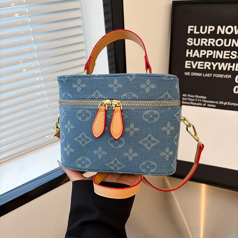 2025秋季新款牛仔蓝色小众水桶包高颜值时尚休闲盒子包链条包化妆