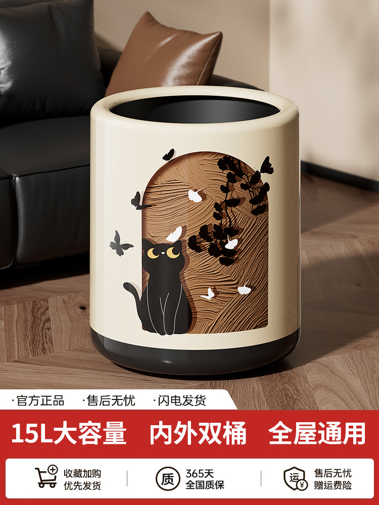 垃圾桶家用2025新款客厅厨房卫生间带盖大容量高颜值室内奶油风